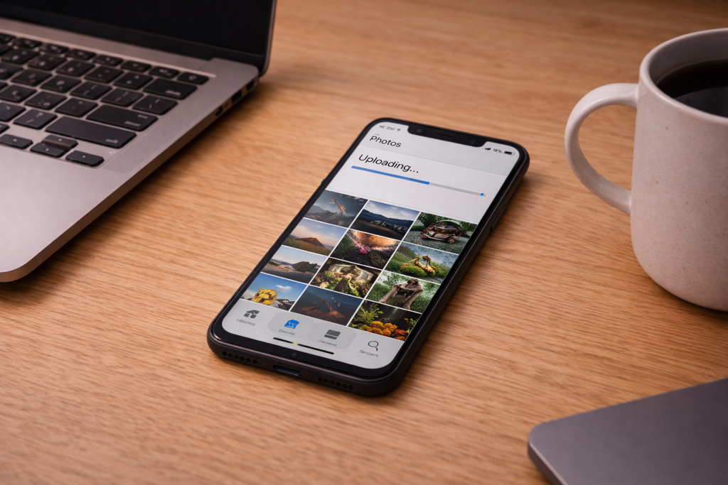 This is often a single item blocking the queue. On iPhone, scroll to the bottom of Photos and look for “Unable to Upload”. If you see it, tap for details. If you don’t, look for recently edited 4K video, Live Photos, or bursts. Those are the files that most often wedge.