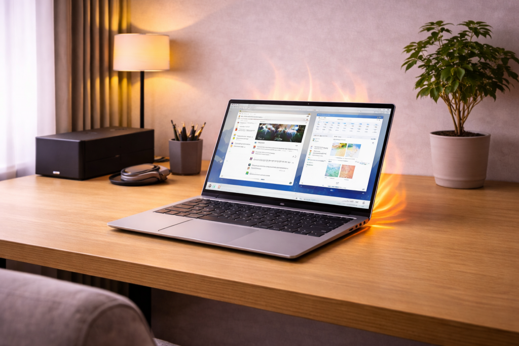 If your laptop gets hot and the fan ramps up while you’re only browsing, writing emails, or on a simple Teams/Zoom call, something is off. Light daily use should sit comfortably with low fan noise most of the time. When it doesn’t, the cause is usually either (1) hidden CPU/GPU load, (2) restricted airflow, or (3) power/firmware settings pushing the system too hard.