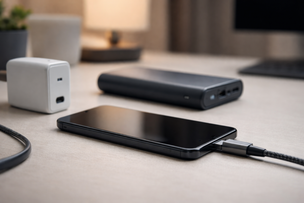 • Wall charger: check wattage and whether it supports USB-C PD (or fast charge standard your phone expects).